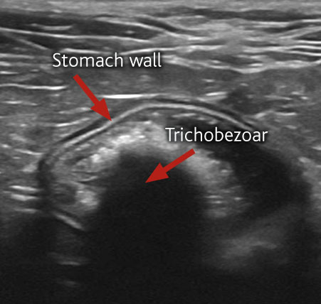 The ultrasound scan revealed Jaffa’s problem to be a Trichobezoar, which is a mass of hair, blocking the exit of his stomach and preventing food from passing through into the intestines.