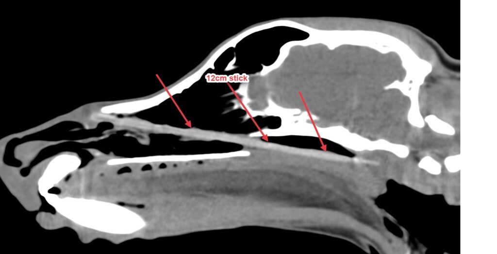 CT scan carried out by Willows Imaging Team reveals a 12cm long stick in Esther’s nasal passage