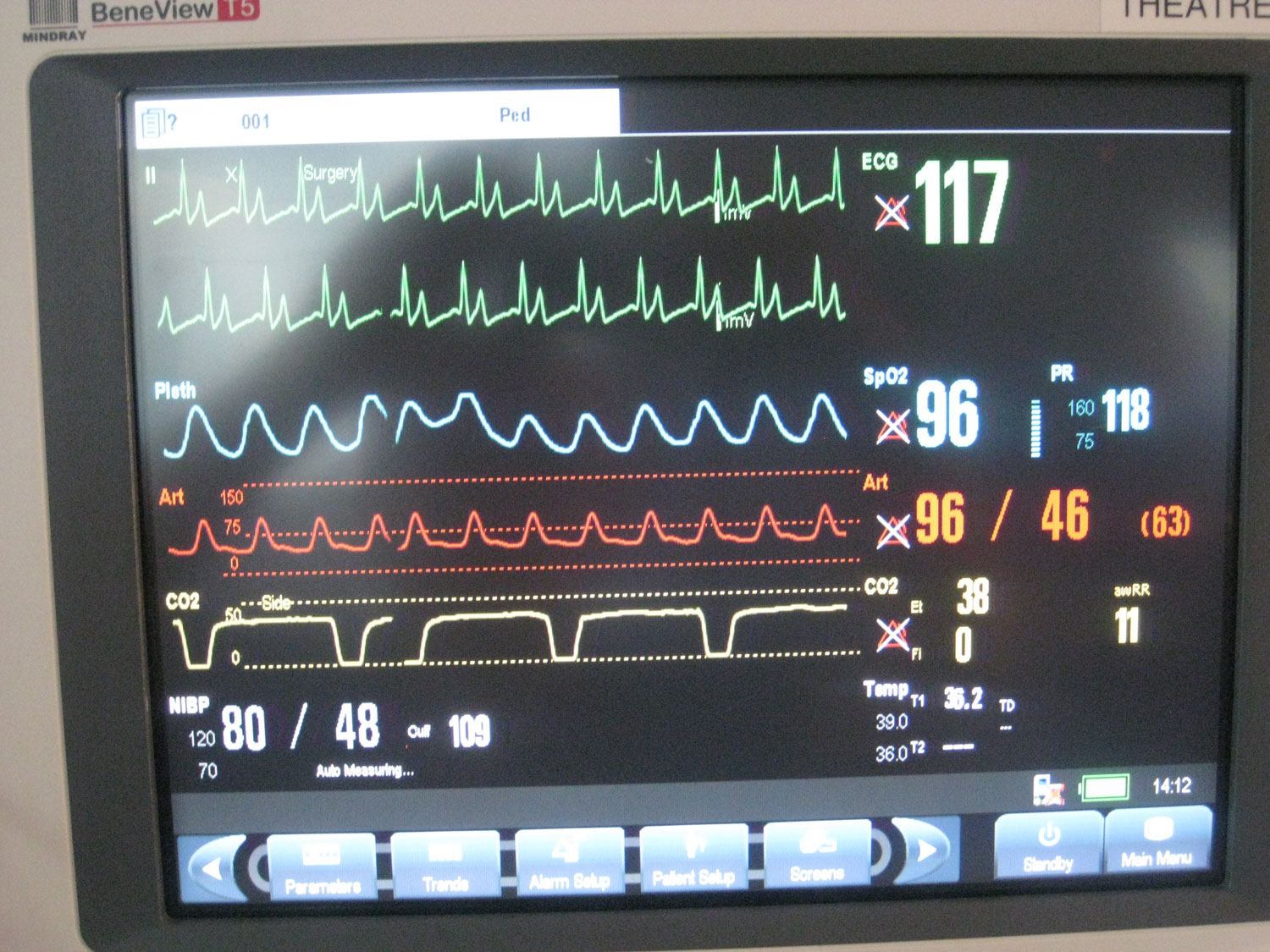 All patients are monitored constantly throughout anaesthesia and into recovery by a dedicated member of the anaesthesia team under supervision by a Specialist Anaesthetist. Vital parameters are routinely monitored and include heart rate, respiratory rate, saturation of haemoglobin with oxygen, blood pressure and body temperature.